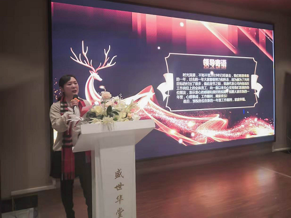 年會上TST公司董事長兼CEO竇伯英女士發表新年致辭:2019年洛陽泰斯特公司在業績上再創新高,2020年是產品迭代創新發展之年,泰斯特將繼往開來、奮勇前行?。。?br />