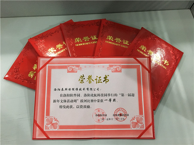 團結就是力量,實力決定成敗。12月22日至30日在北航科技園舉辦的“慶元旦,迎新年”運動會上,洛陽泰斯特參加了所有項目并收獲3個名、1個二、2個三名的驕人戰績,分別是拔河比賽名、籃球接力名、兩人三腳接力名、乒乓球接力二名、雙升比賽三名及電子賀卡制作三名。下面來欣賞下泰斯特團隊的颯爽英姿。