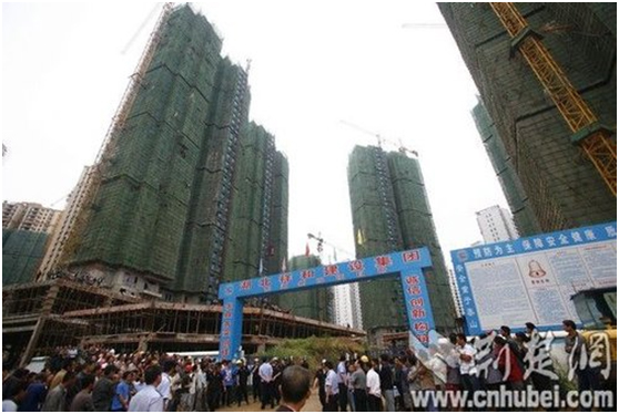 荊楚網消息 2012年9月13日下午13時許,武漢市東湖風景區“東湖景園”還建樓C區7-1號樓建筑工地上的臺施工升降機在升至100米處時發生墜落,造成梯籠內的作業人員隨籠墜落,截止下午16時55分,已發現19人死亡。目前,事故現場搶險工作正在進行中。